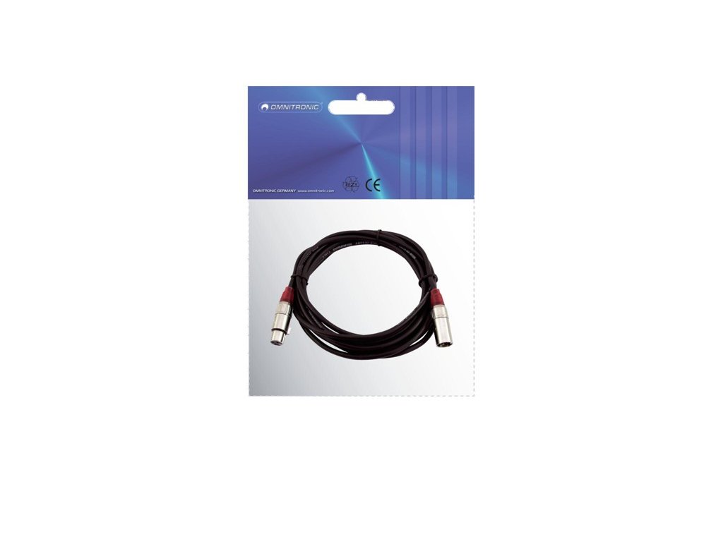Kabel MC-30R, zástrčka - zásuvka, XLR, symetrický, červený, 3m