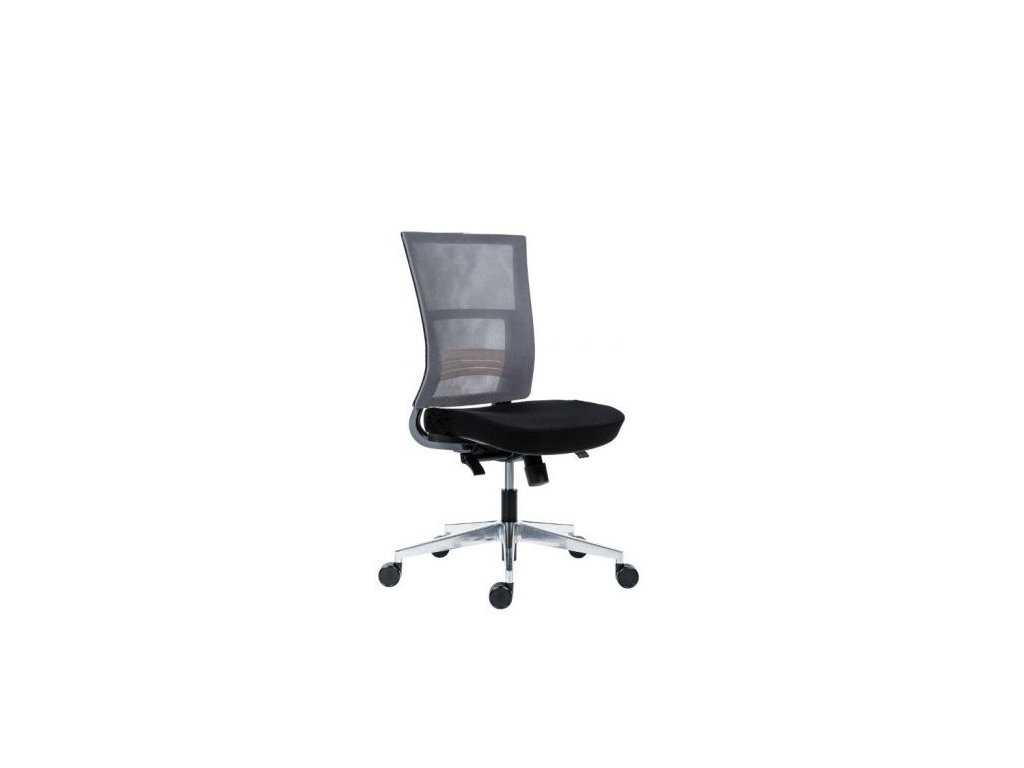 Kancelářská židle s šedou síťovinou na opěráku. Podhlavník a bederní výztuha. Pěna sedáku – studená pěna vstřikovaná do formy. Synchronní mechanismus s trojnásobnou aretací, nastavení tuhosti mechanismu. Leštěná aluminiová báze. Kolečka o průměru 65 mm pro měkké podlahy. Výškově, úhlově a podélně nastavitelné područky s měkkou dotykovou plochou.Doplňkové parametry