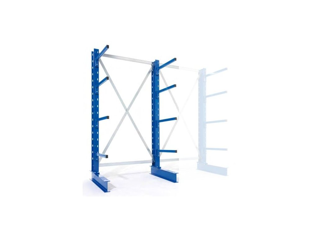 Počet ramen: 4 Počet stojin: 2 Nosnost ramene: 175 kg Vyrobeno z lakované oceli. Konzolové regály slouží pro skladování dlouhých předmětů, jako jsou trubky, latě, desky, tyče, apod. Stojiny regálu jsou vyrobeny z oboustranně děrovaných ocelových profilů. Oboustranné děrování pro možnou budoucí přestavbu z jednostranného provedení na oboustranné. Děrování slouží pro zasouvání jednotlivých ramen. Ramena jsou zajištěna proti vyháknutí zajišťovacím šroubem. Ramena jsou výškově stavitelná v rastru 100 mm. Osová vzdálenost mezi jednotlivými stojinami je 1330 mm. Regály lze rozšiřovat o přístavbové pole, které jsou dodávané včetně ramen a výztuh.Doplňkové parametry