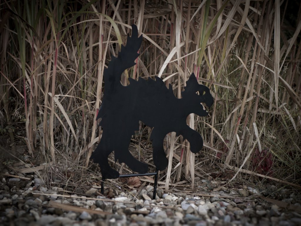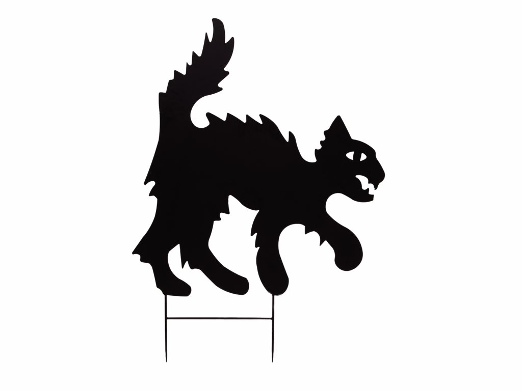 Kovová silueta čarodějnické kočky s naježenými chlupy. Výška dekorace cca 53 cm, šířka cca 45 cm. Dodáváno včetně hrotu pro usazení kočky do země. Siluety Europalms snadno navodí strašidelnou atmosféru na každé párty. Při správném nasvícení vrhají děsivé stíny.Šířka: 45 cm