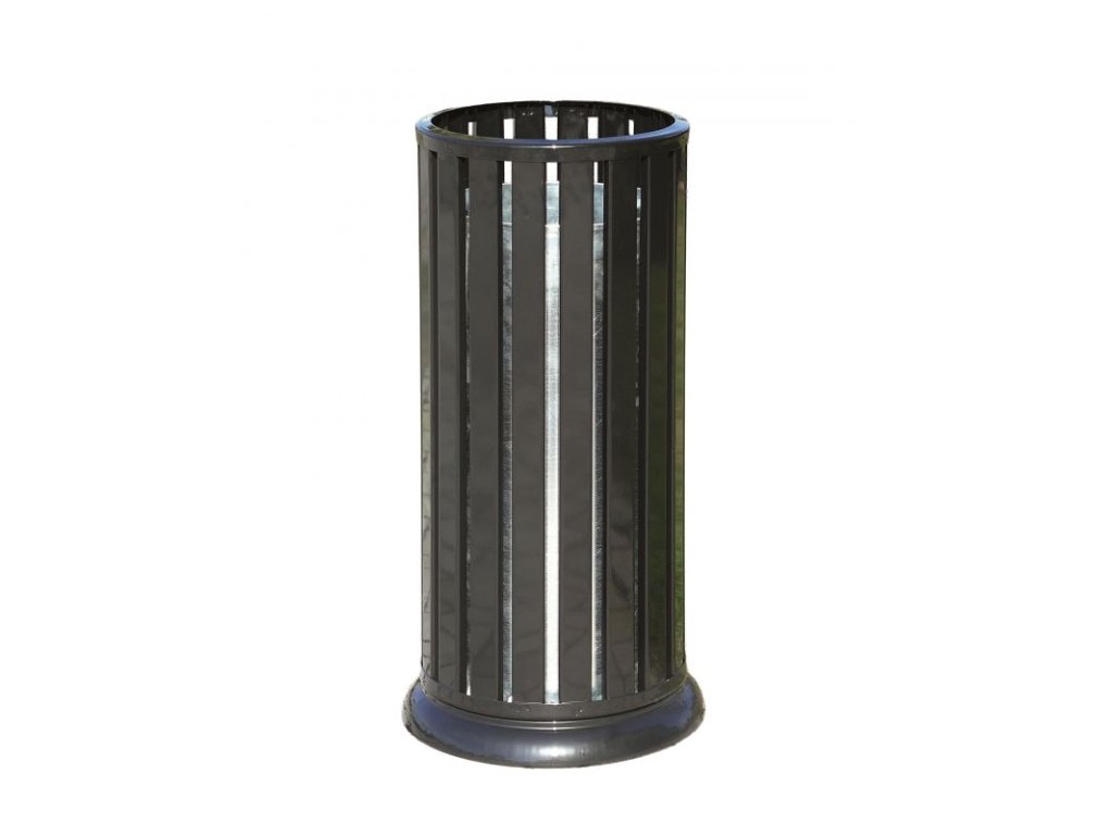 Ocelový odpadkový koš o objemu 55 l. Vyrobeno z kvalitní oceli. Jednoduchá konstrukce s vysokou mechanickou odolností. Vyšší hmotnost a širší základna zajišťují dobrou stabilitu. Koš je vybaven vyjímatelnou vložkou z pozinkovaného plechu. Vložka je vybavena vnitřními úchyty pro snadné vyjmutí. Povrchová úprava je provedena nátěrem práškovou barvou. Možnost přikotvit k podlaze – otvor 3x průměr 10 mm. Vložka otvory opatřena není.Doplňkové parametry