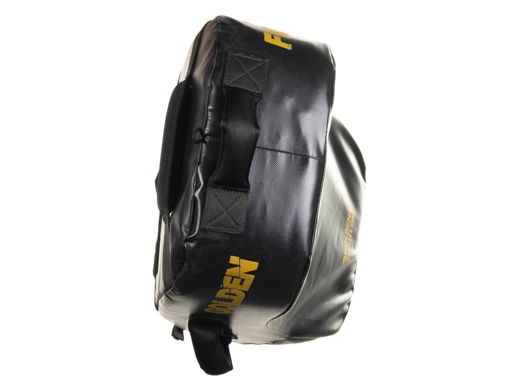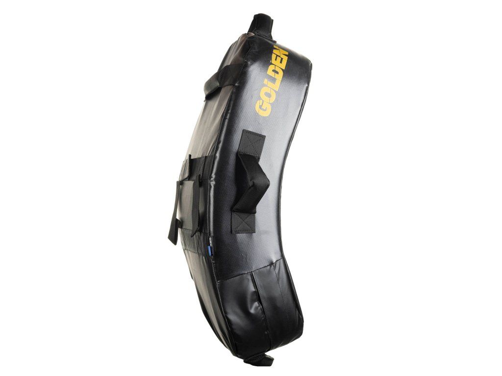 Lapa Fighter Blok - MULTI GRIP - Golden Fighter v oválném tvaru je vyrobena pro nácvik kopů a úderů. Tento mírně prohnutý blok má pro větší bezpečnost zakulacené rohy a perfektní ergonomický tvar. Lapa je nově vybavena pěti úchyty a pro větší variabilitu tréninku nechybí ani tři popruhy na zadní části. Plášť lapy je vyroben z tvrzeného vinylu, který zajištuje dlouhou živostnost. Výplň tvoří speciální molitanová směs, lapa tedy skvěle pohlcuje i ty nejsilnější údery. Díky univerzálnosti je blok vhodný pro většinu bojových sportů. vysoká životnost výrobku vyrobeno v České republice všechny použité materiály jsou z EU jednoduché upínání na suchý zip Velikost: výška: 64 cm; šířka: 36 cm; tloušťka: 15,5 cmDoplňkové parametry