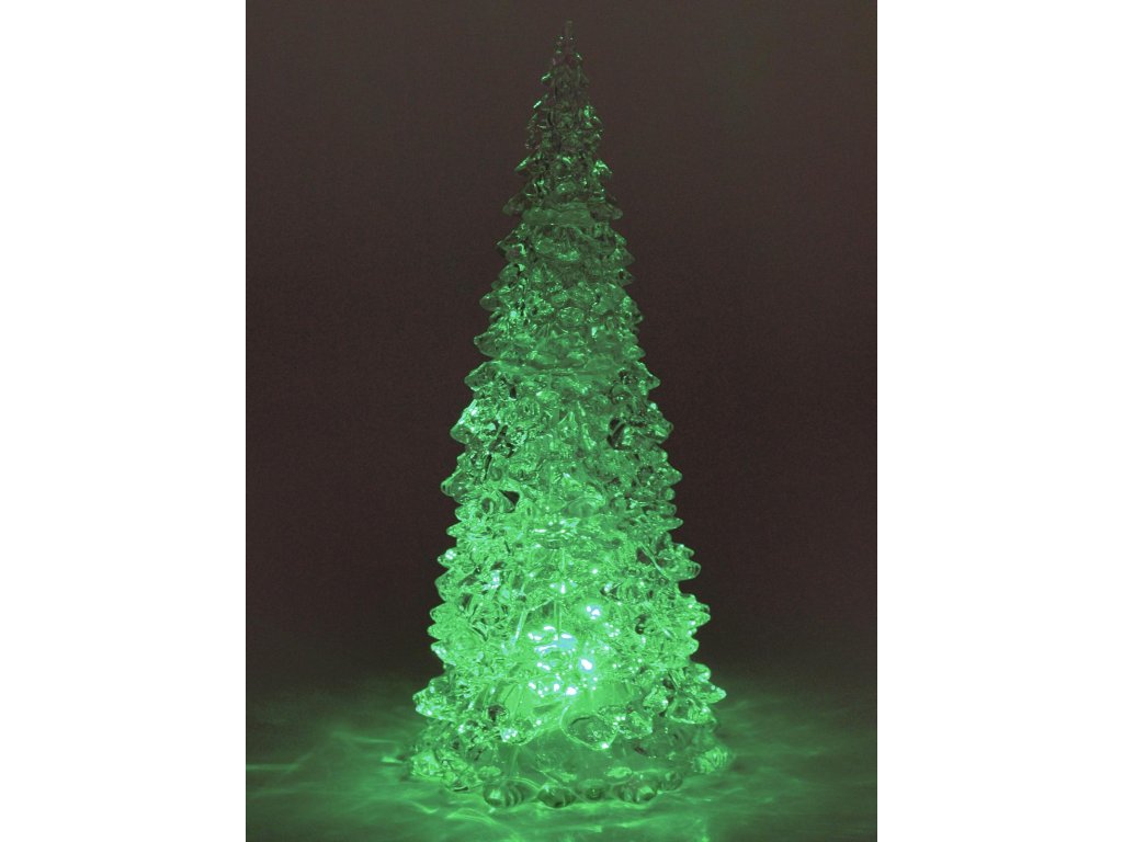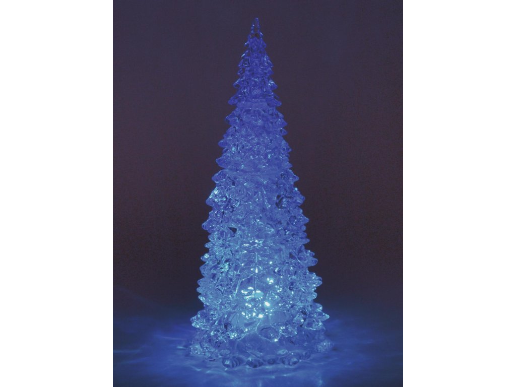 Oblíbená vánoční dekorace. Malý umělý vánoční stromek z průhledného polystyrenu je vybaven barevným LED osvětlením. Automatický provozní režim svícení, prolínání a stmívání RGB barev se spouští pomocí vypínače On/Off umístěného u prostoru pro baterie. Ideální vánoční výzdoba do výlohy, drobné provozovny i pro domácí dekorace. Dodáváno ve třech velikostech 18, 23.5 a 28 cm. Napájení pomocí mikrotužkových baterií (baterie nejsou součástí dodávky). Dekorace je určena pro použití v interiéru.Napájení: 4,5V DC
