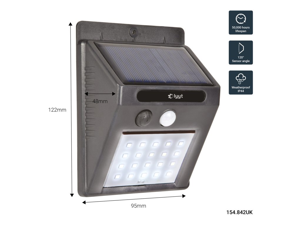 Lyyt 20LED-SSL, LED solární venkovní zahradní nástěnné světlo s pohybovým senzorem