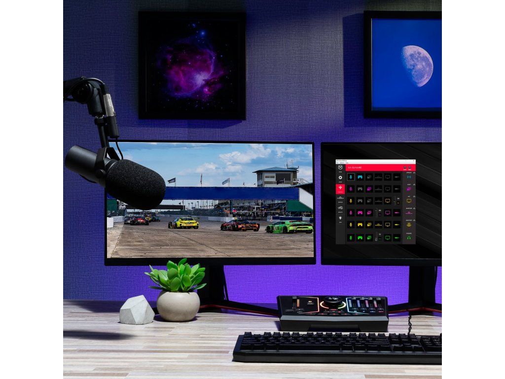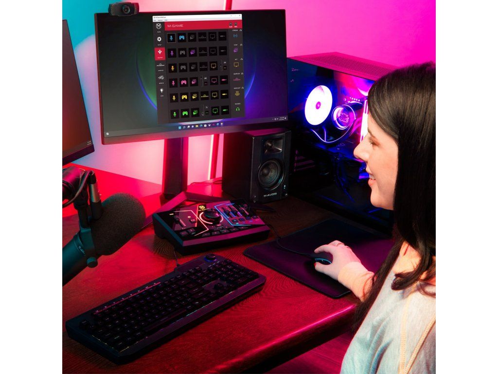 M-Game RGB DUAL streamovací konzole je dokonalým USB rozhraním pro streamování a tvorbu obsahu. Umožňuje živé vysílání s volitelný RGB LED osvětlením, vestavěným samplerem, efekty v kombinaci s profi audio rozhraním. Navíc nabízí duální připojení k počítači. Součástí je vlastní alikace pro uživatelské nastavení.