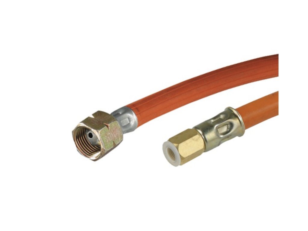 Upozornění: Velmi speciální hadice, která se běžně nepoužívá. Vhodná např. pro připojení smršťovací pistole MEVA BTS k plynovému regulátoru.