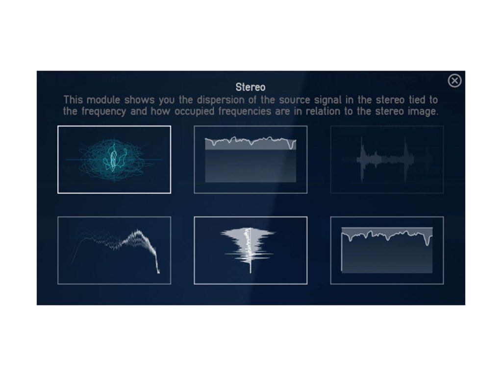 Tento modul vám umožní prozkoumat spektrum stereofonního pole svého mixu. Názorně vidíte, jak jsou frekvence vašeho mixu obsazeny v jednotlivých kanálech i částech stereobáze. Můžete tak zjistit, zda se některé důležité frekvence nevyskytují pouze na jedné straně spektra, nebo jestli jsou rovnoměrně zastoupeny v obou kanálech.