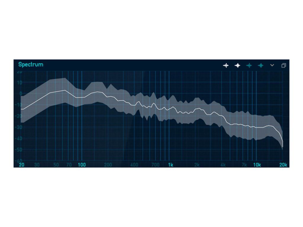 Zajišťuje přesnou frekvenční analýzu zvuku. Rychle zobrazí aktuální spektrální rozložení vašeho mixu, kterou můžete porovnat s referenční nahrávkou. Získáte tak rychlý přehled o tom, na které frekvence se musíte zaměřit, které chybějí nebo naopak přebývají.