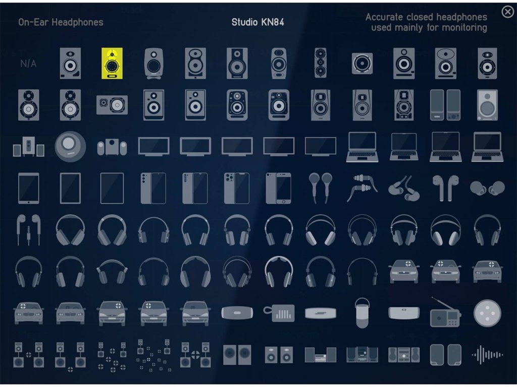 Vyberte si z více než 90 simulací nejznámějších a nejoblíbenějších zvukových zařízení. Zahrnuje aktuální spotřebitelská zařízení, jako jsou notebooky, telefony nebo sluchátka. Vyzkoušejte zvukový profil standardních i profesionálních studiových monitorů a sluchátek. Zjistěte, jak se váš mix projeví v autech, na klubových reproboxech, P.A. nebo malých reproduktorech Bluetooth. Máte také možnost zkontrolovat své mixy v reálném hlučném prostředí, jako je metro, hlučné ulice, nákupní centra a další.