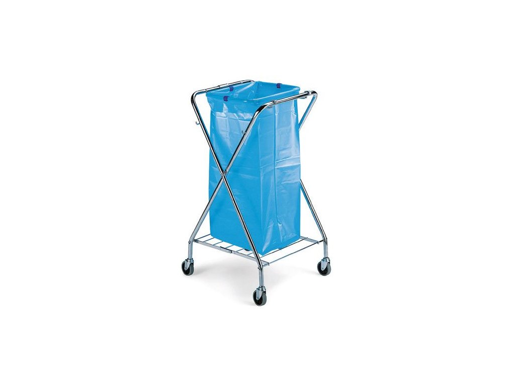 Vyrobeno z kovu s chromovou povrchovou úpravou. Chromovaný stojan se stabilní konstrukcí. Vybaveno gumovými držadly. Snadné uchycení pytle pomocí klipů. Vybaveno roštem ve spodní části konstrukce – zabraňuje protržení pytle. Vybaveno kolečky o průměru 80 mm.Doplňkové parametry