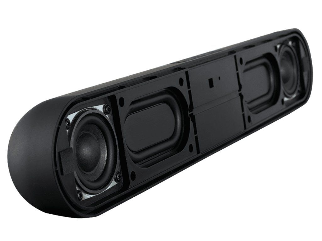 O vyvážené podání zvuku se stará dvojice celopásmových reproduktorů o průměru 2". Ty v nízkých kmitočtech doplňuje pár pasivních basových měničů. Podání celého slyšitelného pásma je vzhledem k malým rozměrům soundbaru překvapivě široké, vyvážené a vyznačuje se nadstandardní dynamikou.