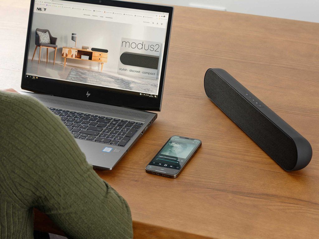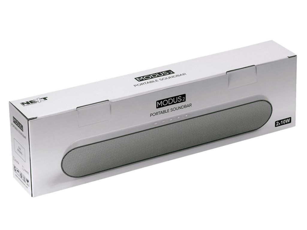 Modus2 je přenosný diskrétní soundbar s překvapivě kvalitní reprodukcí hudby i mluveného slova. Jako zdroje mohou fungovat Bluetooth, SD nebo TF karta, USB flash nebo USB disk, linkový vstup AUX, či dokonce integrovaný přijímač FM rádia. Designové provedení a barevné variace umožní umístit soundbar do jakéhokoli interiéru nebo jej použít na zahradě, na chatě, ve vlaku i v jakémkoli jiném prostoru. Díky integrované baterii zajistí až 6 hodin reprodukce hudby bez připojení k napájecí síti. Se soundbarem Modus2 získáte pocit živé hudby díky technologii 3D stereo. Díky dvěma pasivním vyzařovacím subwooferům má tento malý soundbar i překvapivě čisté a syté basy.