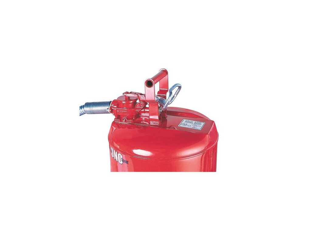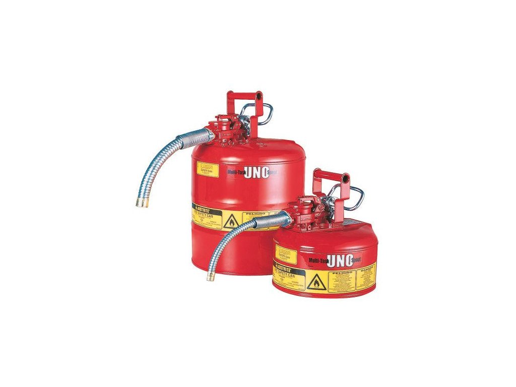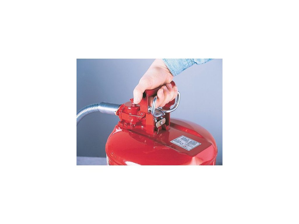 Vyrobeno z kvalitní oceli. Povrchová úprava práškovou barvou. Vybaveno samouzavíracím víčkem a dvojitou uzávěrou proti prošlehnutí plamene. Vybaveno přetlakovou pojistkou pro případ zvýšeného tlaku (nebo i teploty), pojistka je automaticky aktivována při tlaku 0,2 – 0,3 barů – zajištění snížení tlaku/teploty. Ergonomický design zajišťuje optimální rozložení hmotnosti nádoby při veškeré manipulaci/přenášení. Nádoba je certifikována dle předpisů o bezpečnosti práce a předpisů o manipulaci s hořlavinami USA (OSHA a NFPA). Nádoba je certifikována dle norem FM a UL. Typ II je vybaven výpustní hadicí. Typ II má otvírání a uzavírání výstupní hadice v horní části nádoby vedle držadla, ovládá se pojistkou. bezpečné dávkování hořlavých kapalin.Doplňkové parametry