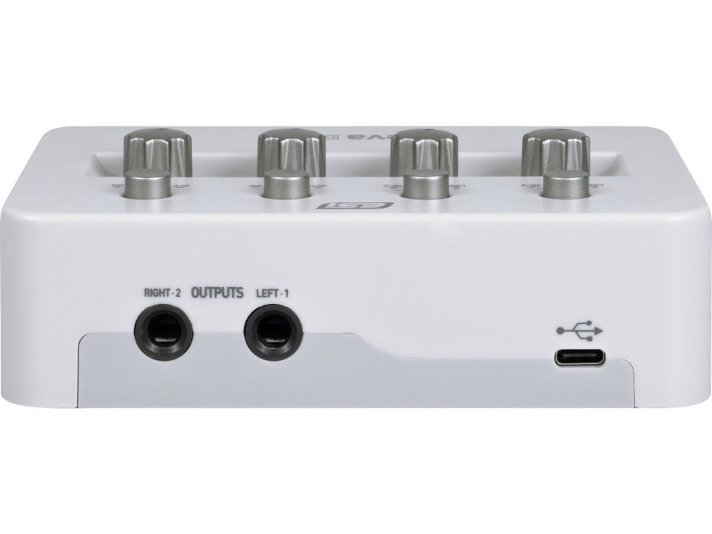 Na výstupní straně je integrovaný sluchátkový zesilovač a k dispozici jsou stereo TRS výstupy s hlavním ovládáním hlasitosti, které umožňují připojení mixážního pultu, zesilovače nebo aktivních reproduktorů. Příchozí zvukové signály můžete monitorovat s nulovou latencí, stačí stisknout tlačítko přímého monitoru. Celkem 2 vstupy s dynamickým rozsahem 97 dB(a) a 2 výstupy s dynamickým rozsahem 107 dB(a) lze použít i pro signály linkové úrovně.
