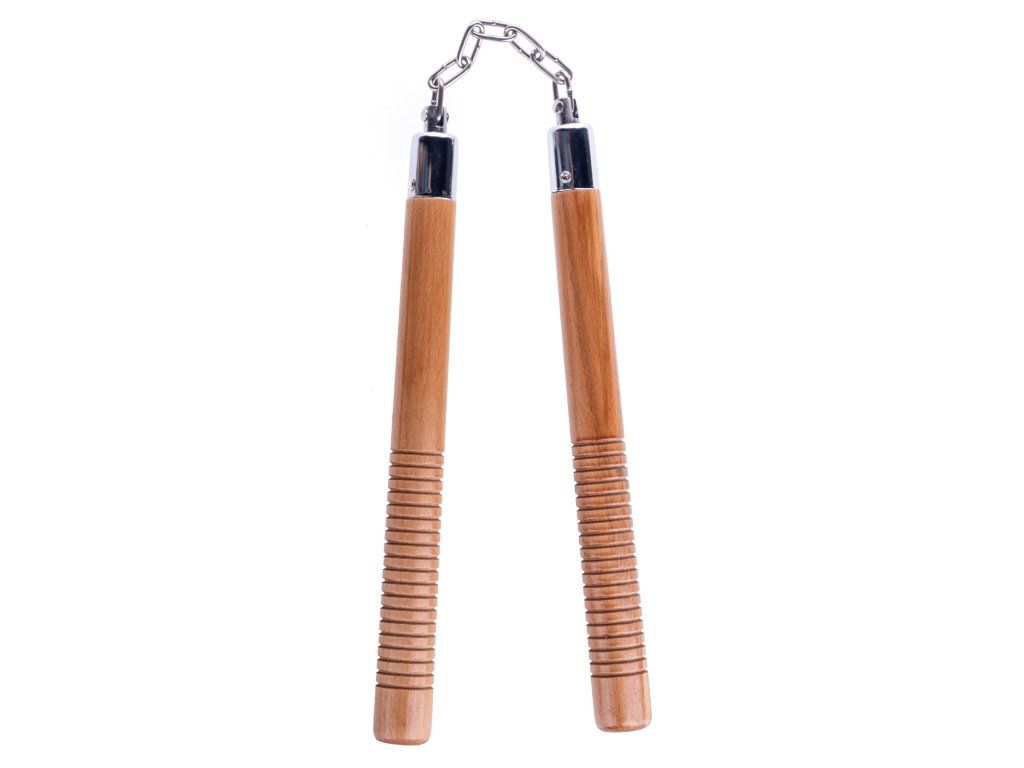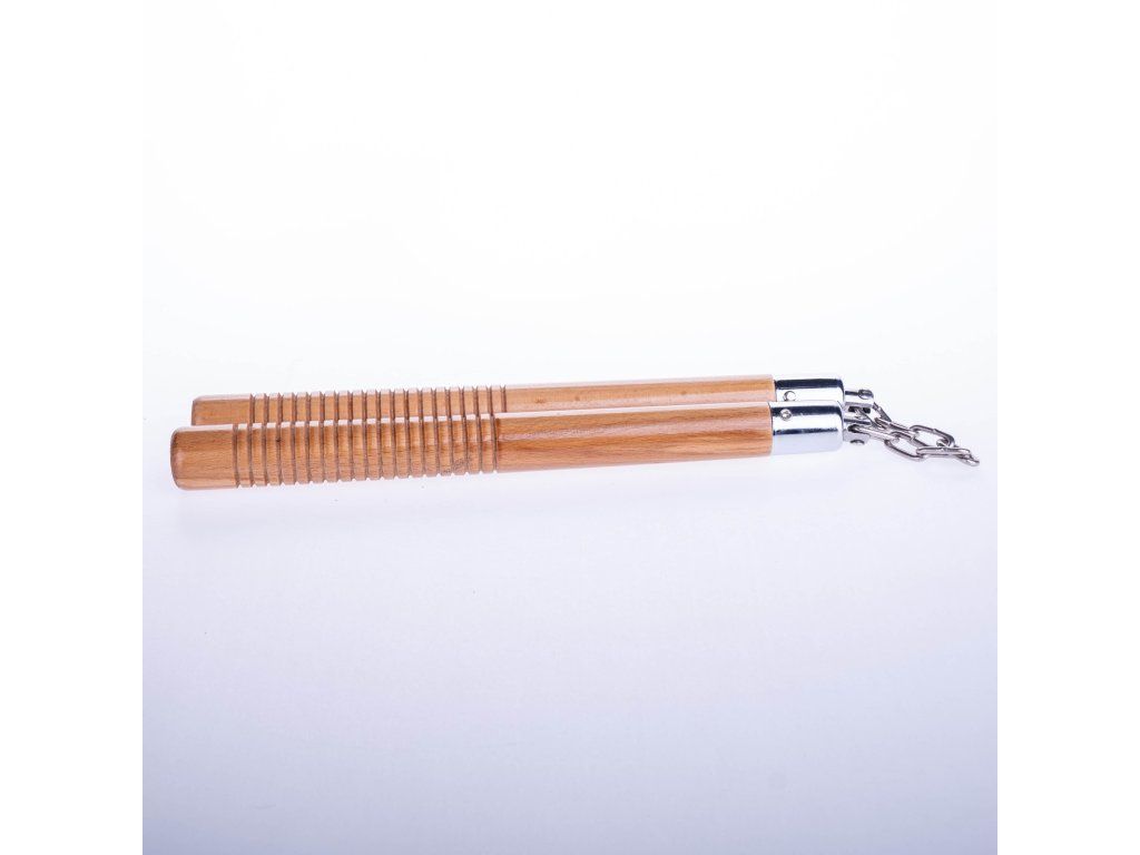 Nunchaku Overall vyřezávané - hnědá Klasické nunchaku s řetízkem. Prodáváno v kulatém provedení. Délka 31 cm s průměrem 2,5 cm. Nunchaky jsou velmi kvalitně zpracovány a vyrobeny z červeného dubu. Délka provázku je 13 cm. kvalitní zpracování trvanlivý materiál 13 cm dlouhý řetízek délka nunchaku 31 cm drážky na rukojetiDoplňkové parametry