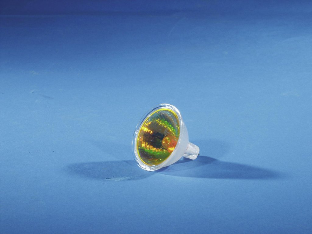 Cool-beam mirrored lampsMore light at a same performance by higher coiled filament temperature Longer lifetime by permanent filament renewal (tungsten parts bond to the gaseous halogene parts even before reaching the glass bulb The temperature circulation has the effect that the tungsten parts precipitate again on the filament Constant light during lifetime, as no bulb blackening occurs Comfortable and fresh light Dimmable (blackening of the glass bulb in case of dimmed operation is eliminated by a short operating time at full voltage) Different illumination angles for different application areas Low power consumptionNominal wattage: 50 W