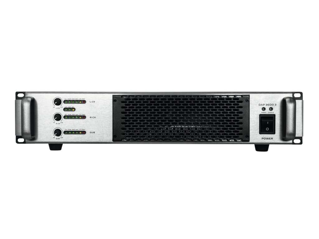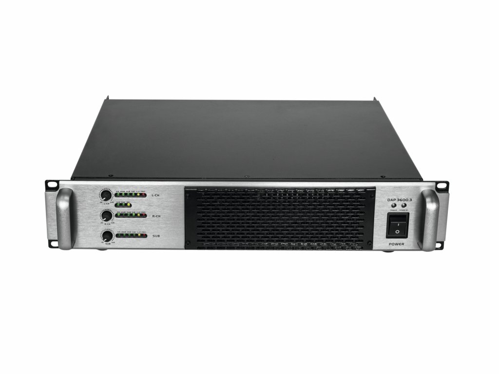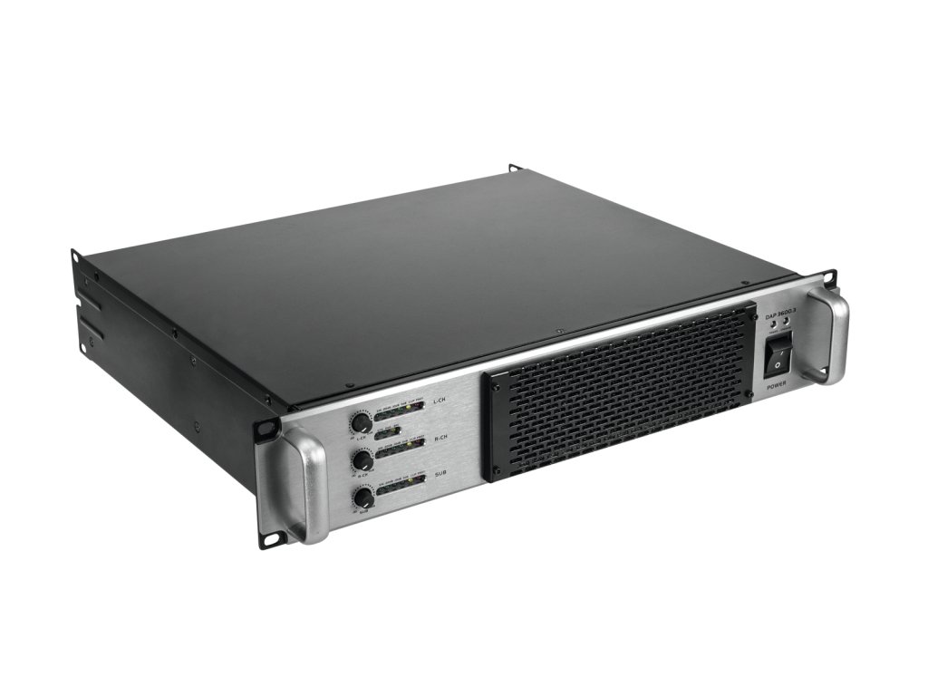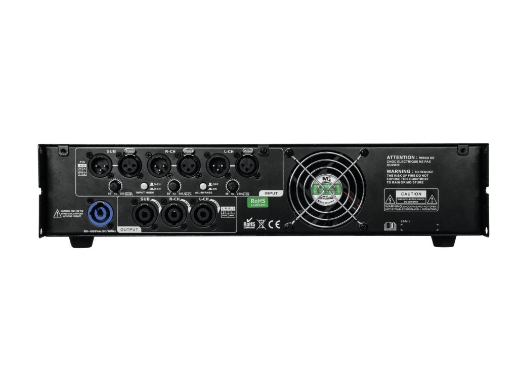 Profesionální 3-kanálový zesilovač třídy D, výkon 1x 2000W + 2x 800W (4 Ohm). Moderní design s hliníkovým čelním panelem, nízká hmotnost zesilovače. Nastavitelná frekvence crossoveru pro satelity a subwoofer. Možnost zapojení 2.1 nebo 3.0, funkce Bypass. Zabudovaný Limiter a ochranné obvody proti přetížení a přehřátí. Regulace úrovně hlasitosti všech tří kanálů na předním panelu zesilovače, LED indikace úrovně signálu a stavových hlášení. Připojení a výstup signálu pomocí XLR konektorů, připojení reproduktorů pomocí Speakon konektorů. Výkonný a kompaktní zesilovač vhodný pro ozvučení hudebních klubů a restaurací, salónků, tanečních parketů, sportovních studií apod.Napájení: 100-240V AC, 50/60 Hz