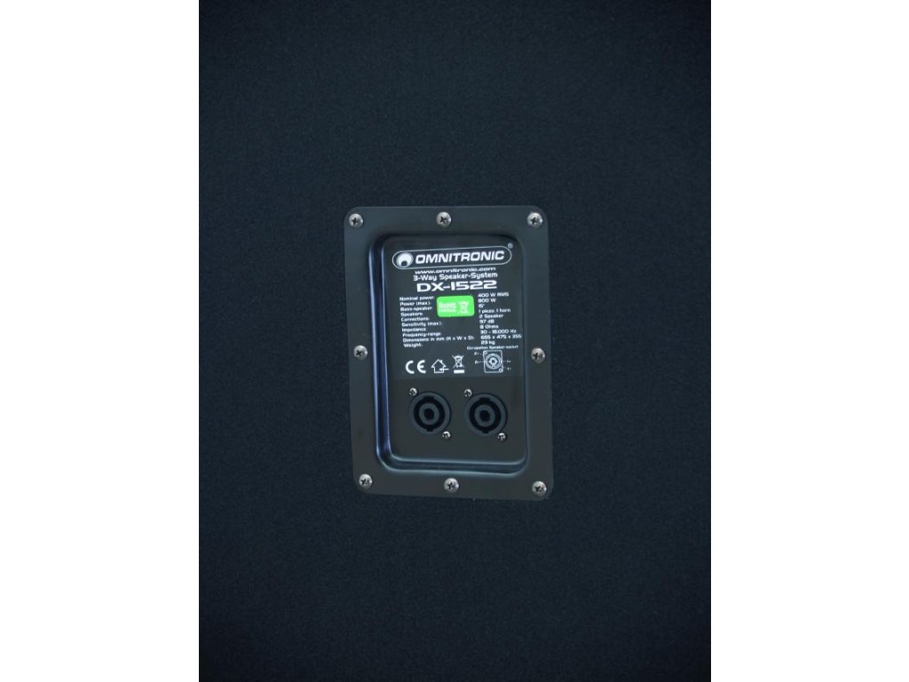 Kompaktní univerzální 3-pásmový reprobox. Výkon 200 W RMS, impedance 8 Ohm, 15“ basový reproduktor s dvojicí bassreflexů, středová horna a výškový tweeter. Reproboxy Omnitronic série DX jsou dlouhodobě nejprodávanější boxy v Evropě ve své kategorii. Reproboxy se díky svým malým rozměrům a nízké hmotnosti snadno přenášejí. Jsou potaženy černým kobercem, který společně s ochrannými rohy zabraňuje jejich poškození při manipulaci. Každý box má po stranách dvojici držáků pro přenášení, satelity jsou vybaveny zapuštěným hnízdem pro jednoduchou instalaci na stativ či distanční tyč. Reproboxy mají univerzální použití, jsou vhodné pro mobilní akce, živé hraní, prezentace a předváděcí akce i pro pevné instalace v menších tanečních klubech. Boxy jsou určeny pro hobby a poloprofesionální použití. Při kladení důrazu na kvalitní basy doporučujeme kombinovat tyto reproboxy se subwoofery Omnitronic série BX.Hudební výkon: 200 W RMS
