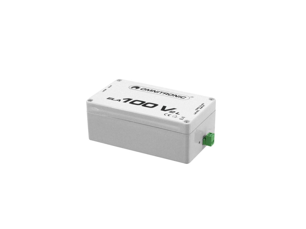 100 V transformátor do jednotek s linkovým vstupem, 100 V vstup se šroubovací svorkou, RCA a XLR nesymetrický výstup, nastavitelná úroveň linkového výstupu (0-1,5 V při vstupním napětí 100 V), izolovaný plastový kryt, vstup a výstup DC oddělené, bez nutnosti napájení přes napájecí jednotku nebo baterii.Impedance: Systémy veřejného ozvučení 100V