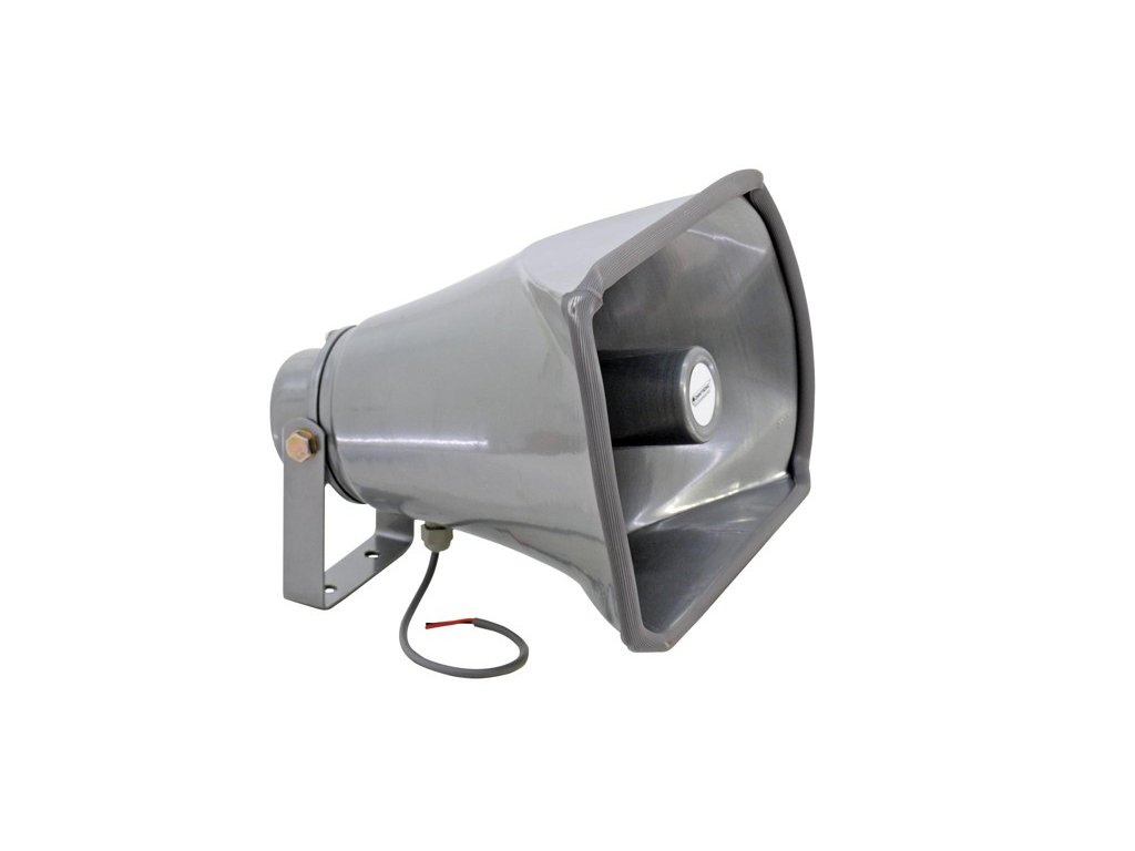 Re-entrantní reproduktor. Odolný proti vlhkosti, 8 Ohmový systém, hliníkové provedení, možnost uzamčení v nosných držácích.Jmenovitý výkon: 35 W RMS