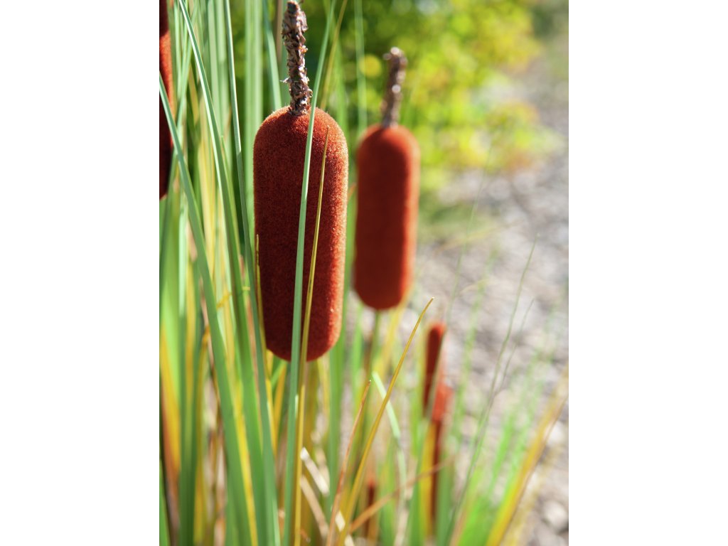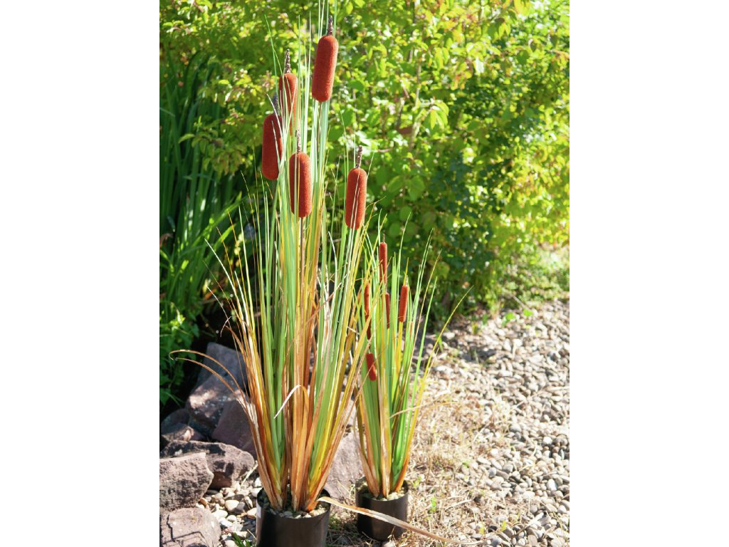 Orobinec, známý také jako říční rákos nebo doutníky, patří mezi nejoblíbenější dekorativní rostliny. Dlouhým zeleným listům vévodí charakteristické tmavé květenství (palice), které připomínají doutníky. Na rozdíl od živého rákosu se však tato dekorace nemusí vysoušet a nijak udržovat. Dlouhé listy mají několik odstínů zelené barvy a rostlina je umístěna v plastovém květníku s oblázky. Výška 150 cm.Výška: 150 cm