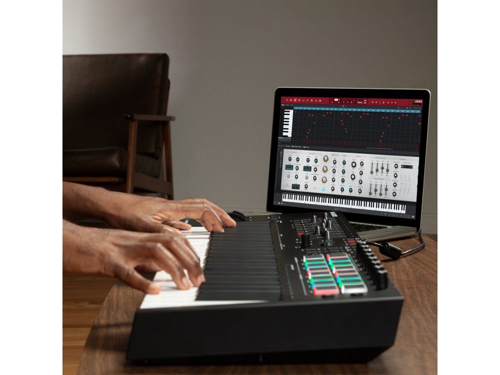 K produktu je přiložen rozsáhlý softwarový balík – od profesionální DAW aplikace až po prémiové nástroje od AIR Music Tech. Kompletní sada pokrývá syntézu, akustická i elektrická piana a beatmaking.