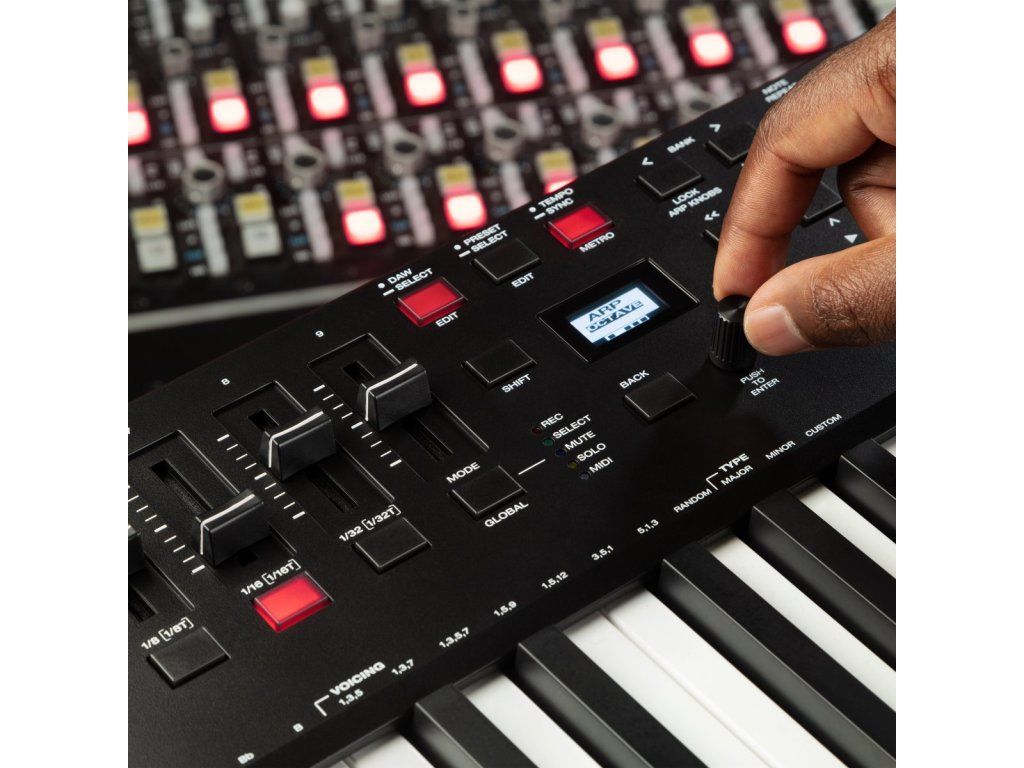 Pokročilá USB MIDI klaviatura s 49 polo-závažovými klávesami s aftertouchem, 16 RGB pady a rozsáhlým ovládacím rozhraním. Nabízí Smart Chord a Smart Scale, vestavěný arpeggiátor, DAW integraci s auto-mappingem a OLED displej pro intuitivní práci. Perfektní pro produkci, živé hraní i studiové nasazení. Podpora USB i 5pin MIDI výstupu rozšiřuje možnosti připojení. Součástí je prémiový softwarový balík se špičkovými nástroji a DAW.