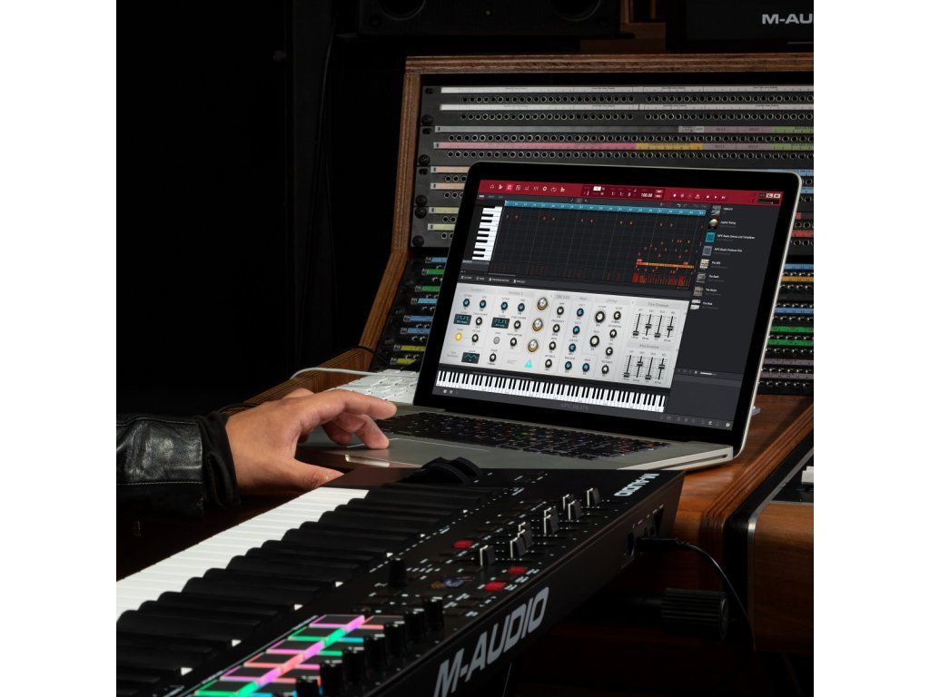 Součástí je prémiový balík softwaru zahrnující DAW, piana, syntezátory a elektronické nástroje od AIR Music Tech – ideální pro široké spektrum žánrů a úrovní zkušeností.