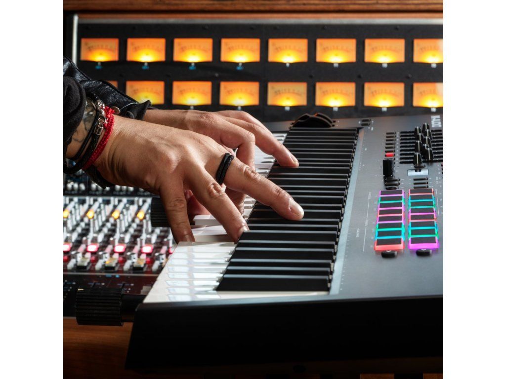 Největší model z řady Oxygen Pro nabízí 61 polo-závažových kláves s aftertouchem, 16 RGB padů, 9 faderů a 8 otočných ovladačů, ideální pro studiové i živé použití. Díky Smart Chord, Smart Scale, vestavěnému arpeggiátoru a plné integraci s DAW aplikacemi poskytuje komplexní řešení pro moderní produkci. USB i klasické MIDI připojení, OLED displej a precizní klaviatura PrecisionTouch zajišťují profesionální hratelnost a kontrolu. Součástí balení je také rozsáhlý softwarový balík pro okamžité využití.