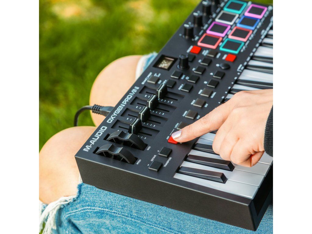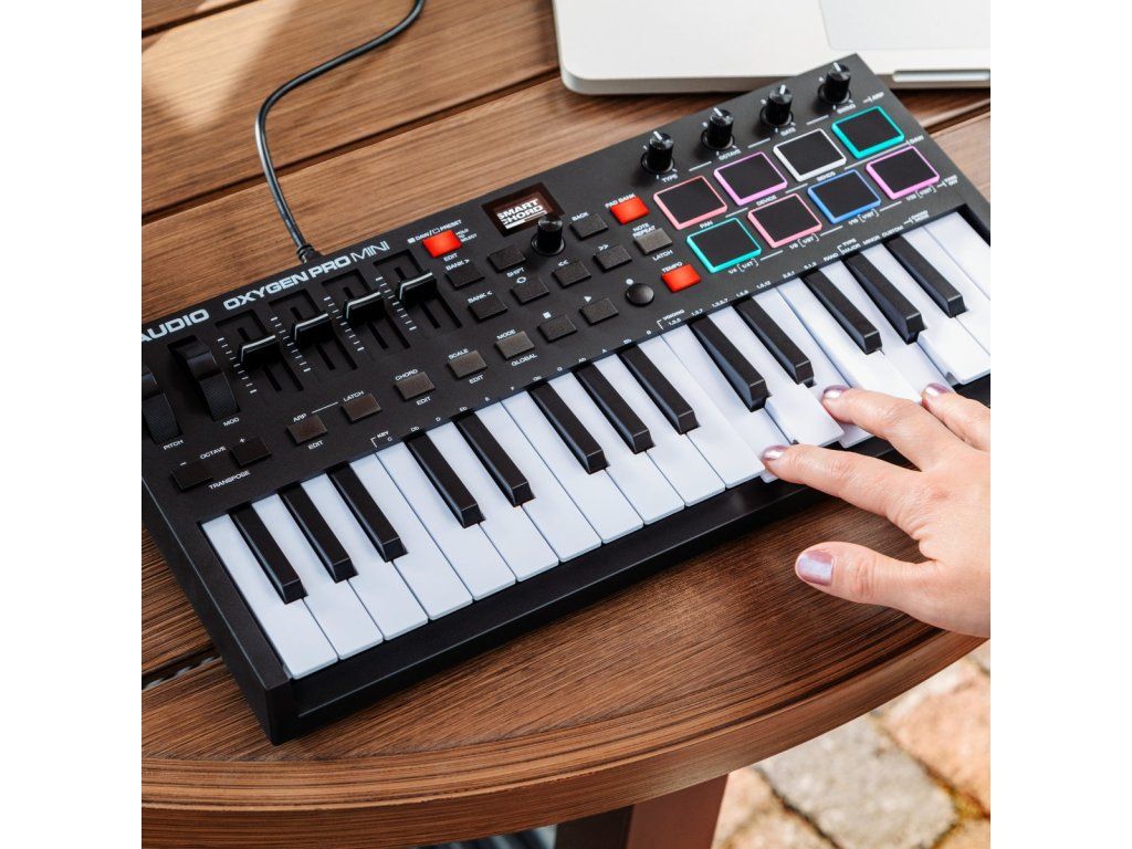 Oxygen Pro Mini je navržen s důrazem na přenositelnost a profesionální ovládání. Díky precizní mini-klaviatuře s citlivostí a polo-závažím nabízí expresivní hru i v malém formátu. Hmotnost pouze 1,2 kg z něj dělá ideální nástroj na cesty.