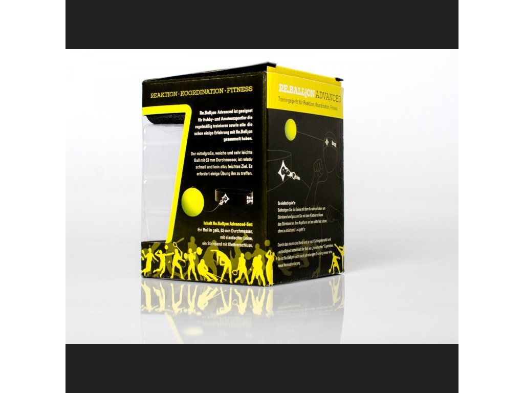 Žlutý reakční míček - Středně pokročilý Tréninková pomůcka pro zábavu i výkon. Rychlost a nepředvídatelnost "Re.Ball.Do" míčku na gumě, vylepší vaší flexibilitu, reakce, a koncentraci. Tato pomůcka zůstává i po měsících pravidelného tréninku velkou výzvou. Re.Ball.Do se prodává ve třech různých velikostech pro různé úrovně - od začátečníků po pokročilé. Funkce - míček je upevněn pomocí zapínací čelenky a gumového provázku na hlavě. Uživatel se jej snaží zasahovat údery a kopy případně se mu vyhýbat. Druhy míčků: Začátečník (zelená) - velký,měkký a lehký míček - jednoduchý k zasažení. Středně pokročilý (žlutá) - míček je menší a rychlejší a proto je těžší jej zasáhnout. Pokročilý (červená) - míček je u tohoto modelu velmi malý a proto se jen velmi obtížně zasahuje.Doplňkové parametry