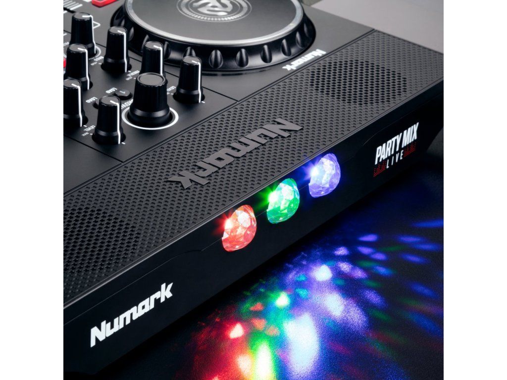 Velkým plusem konzole Numark Party Mix LIVE je zabudovaný světelný LED modul v zadním panelu, se kterým dokážete udělat nejen hudební, ale i světelnou show. Trojice barevných LED diod se synchronizuje s přehrávanou muzikou a dodá vašemu hraní tu správnou atmosféru. LED modul je možné kdykoli vypnout.