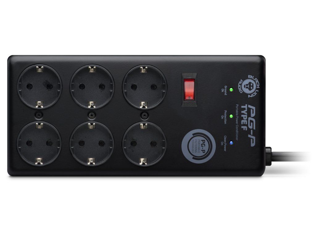 PG-P F má 6 euro zásuvek pro připojení přístrojů. Všechny jsou jištěny a poskytují kvalitní filtrované napájecí napětí s technologií PG-P.