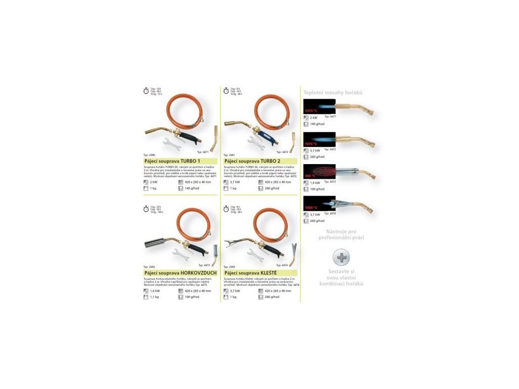 Souprava je určená pro instalatérské a řemeslné práce ve venkovním prostředí. Je vhodná pro měkké a tvrdé pájení,opalování nátěrů a různé druhy ohřevu. Pro připojení 2kg propanbutanové lahve je nutné zakoupit ventil U2156A,pro připojení 10kg propanbutanové lahve regulátor UNP01011 nebo U4498.Doplňkové parametry