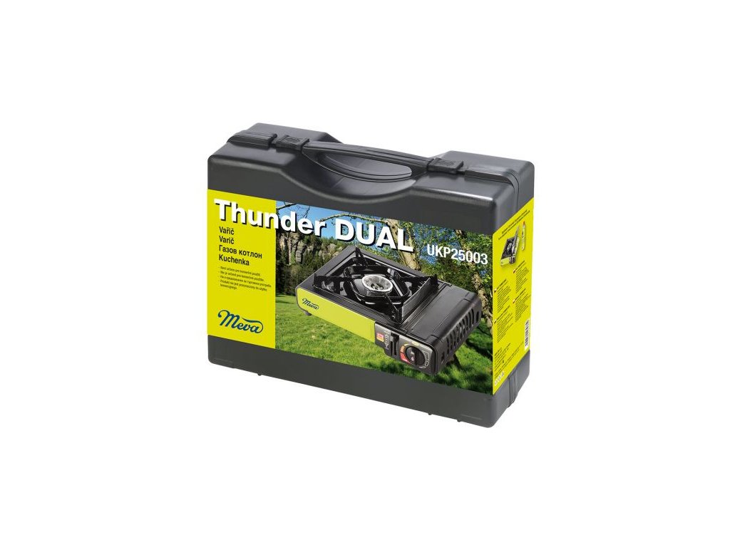 Kempingový vařič Thunder DUAL nové generace přináší maximální flexibilitu pro každé dobrodružství. Jeho hlavní předností je unikátní možnost připojení jak ke klasické plynové kartuši 227g (typ: UKP02002), tak k propan-butanové lahvi (připojovací set nutno dokoupit pod typem UNP25001), takže si vždy zvolíte zdroj energie podle situace. Ať už vyrážíte nalehko na víkendový výlet, nebo plánujete delší pobyt v přírodě, tento vařič se vám dokonale přizpůsobí. Díky dvěma samostatným certifikátům – pro provoz s kartuší i s plynovou lahví – máte jistotu bezpečného a spolehlivého používání v obou režimech. Praktické řešení 2v1 dělá z tohoto vařiče ideální volbu pro kempaře, cestovatele i rybáře, kteří hledají spolehlivý, univerzální a bezpečný zdroj vaření na cestách. Hlavní výhody: • Systém 2v1 – možnost připojení ke kartuši i PB lahvi • Dvojitá certifikace – samostatné certifikáty pro oba způsoby připojení zaručují bezpečný provoz • Snadná obsluha – integrovaní piezo zapalování • Rychlé připojení ke zdroji plynu • Stabilní a odolná konstrukce • Kompaktní rozměry a balení v plastovém kufruDoplňkové parametry