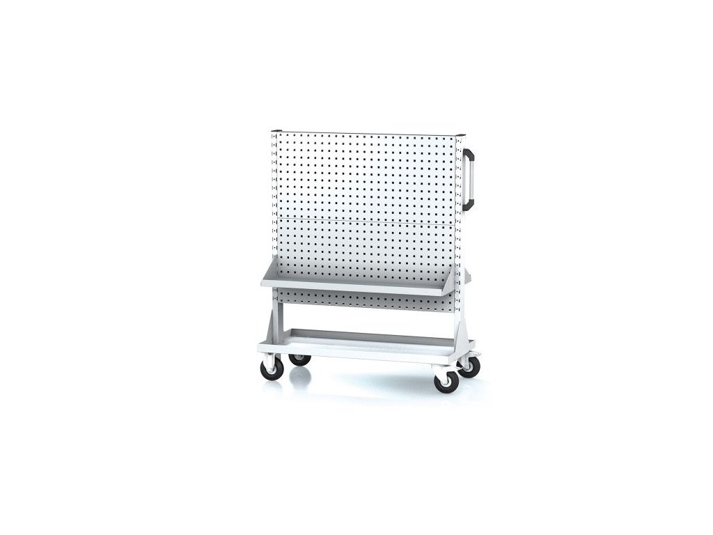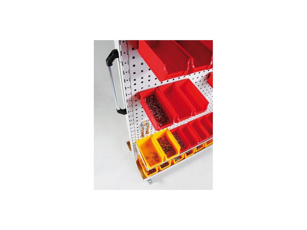Vyrobeno z ocelového plechu. Pro každodenní náročné nasazení v průmyslových montážních provozech, skladech, výdejnách a prodejnách nářadí. Podvozek osazen – 2x pevné, 2x otočné kola o průměru 100 mm. Vybaveno bočním madlem pro snadnou manipulaci.Doplňkové parametry