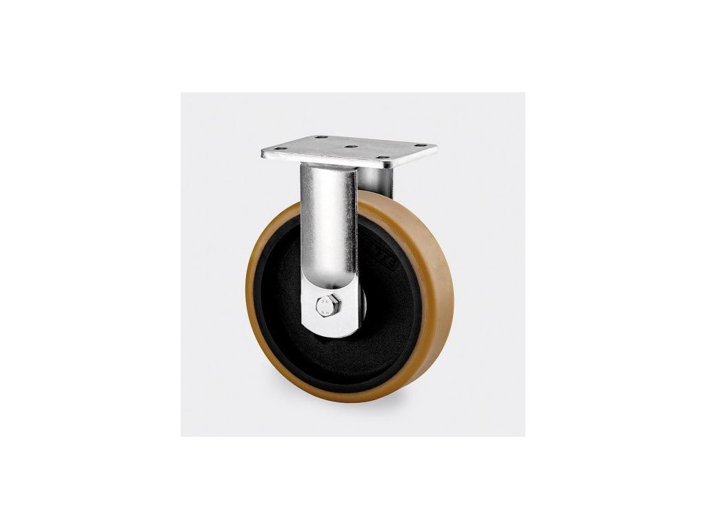 Střed kola je vyroben ze slitiny a obruč z polyuretanu. Svařovaná vidlice je zinkochromatována. Použití především tam, kde je extrémní požadavek na nosnost. V souladu s normou EN 12533 – Kladky a kola pro zařízení pohybující se rychlostí do 4 km/h a 16km/h. - Těžkotonážní pojezdová kola s nosností 1000 kg. - Litinový disk, polyuretanová obruč, kuličkové ložisko. - Použití především tam, kde je extrémní požadavek na nosnost. 200 mm 50 mm 1200 kg 245 mm 105x80/75 mm 135x110 mm 11 mmDoplňkové parametry