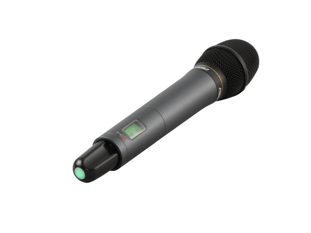 Kondenzátorový ruční bezdrátový mikrofon s kardioidní směrovou charakteristikou. Robustní ergonomické hliníkové pouzdro. Je určen pro použití s přijímači řady WISE ONE a WISE TWO. Vysoce kvalitní komponenty a inteligentní funkce zajišťují nejlepší výkon a vysokou spolehlivost. Synchronizace a monitorování v reálném čase prostřednictvím přijímače 2,4 GHz iSync. Nastavitelné uživatelské jméno a kontrolka. LCD displej s vysokým rozlišením. RF výstup přepínatelný 10mW / 30mW / 50 mW. Nastavitelná úroveň zisku. Funkce zámku pro zabránění nechtěné změně nastavení. Mikrofon je kompatibilní s kapslí Shure SM-58. Provozní dosah činí až 60 m při přímé viditelnosti.Napájení: 3 V DC