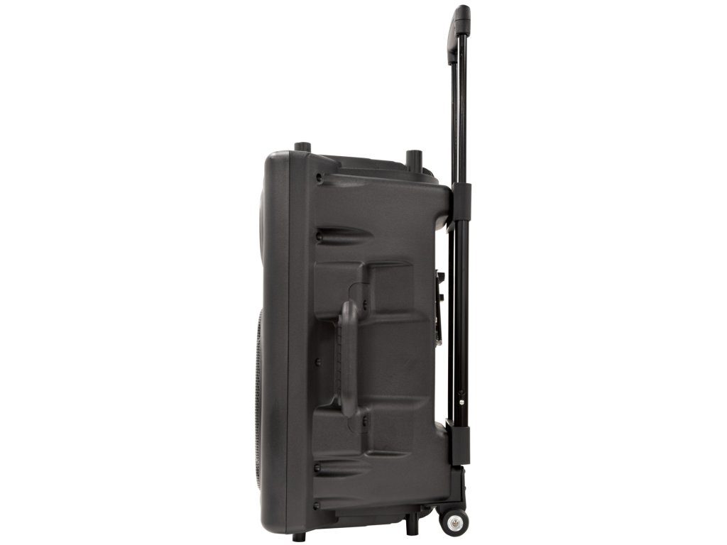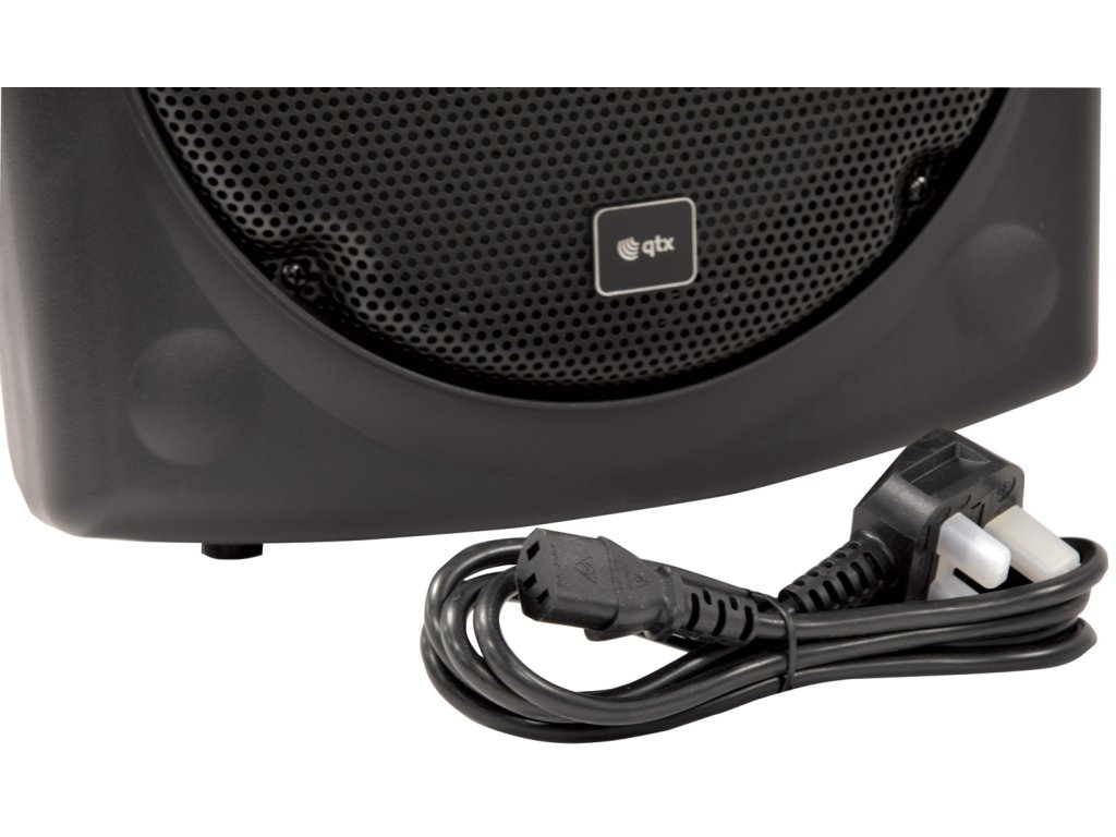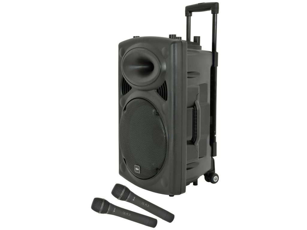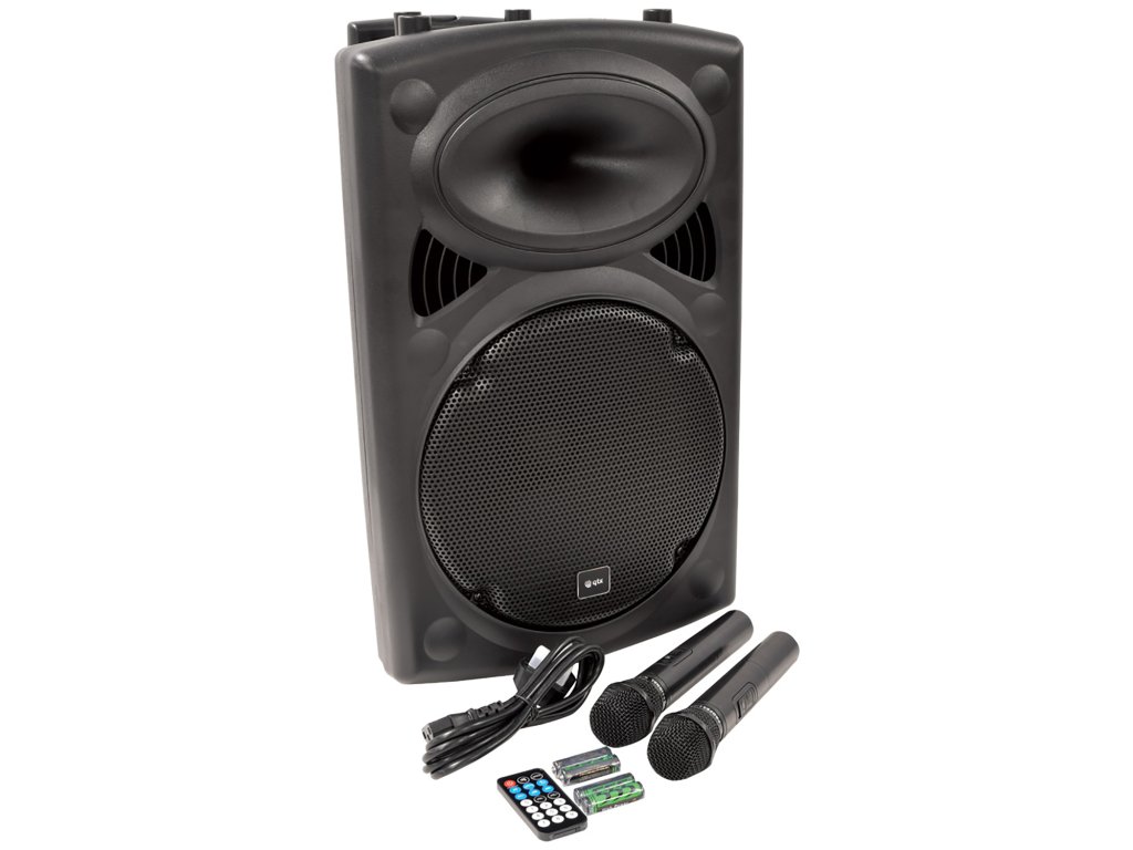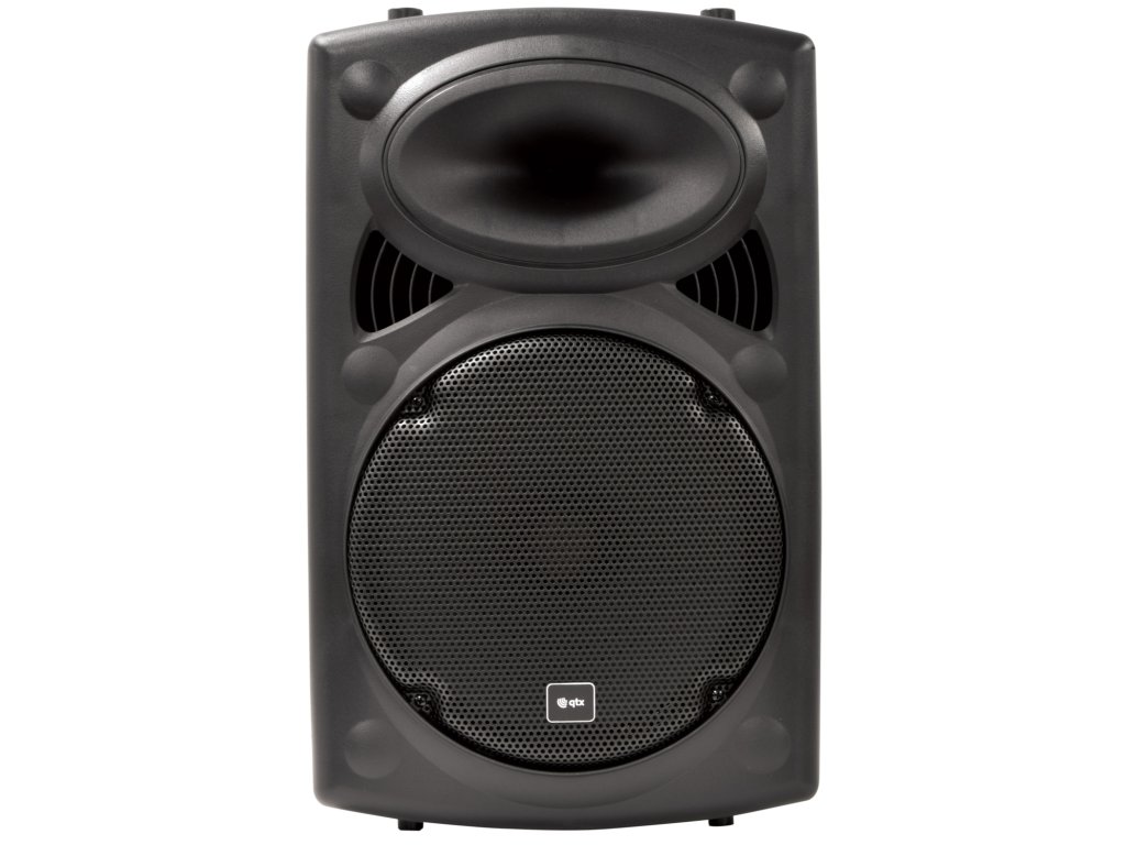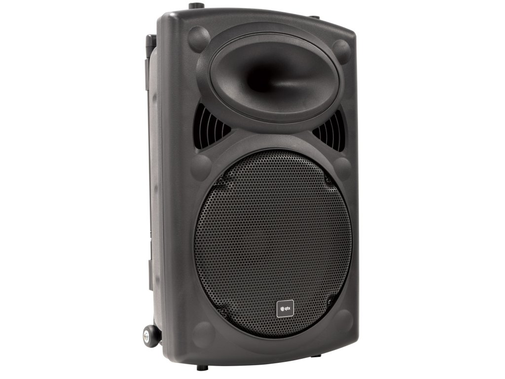 Kompaktní 12" přenosný PA zvukový systém. Vestavěný zesilovač napájený ze sítě nebo z interní dobíjecí baterie napájející hlavní měnič a kompresorem řízenou hornovou jednotku. Součástí balení jsou dva ruční bezdrátové UHF mikrofony s přijímači zabudovanými v sekci mixážního pultu/zesilovače v zadní části spolu s dalšími dvěma kabelovými mikrofonními vstupy, pomocným linkovým vstupem a integrovaným USB/SD/FM přehrávačem médií s funkcí nahrávání. V přehrávači médií je také zabudován Bluetooth přijímač, který umožňuje spárování s chytrým telefonem nebo tabletem pro bezdrátové přehrávání zvuku s párováním TWS pro propojení 2 QRPA jednotek jako stereo páru BT. Zatahovací rukojeť a zadní kolečka.Napájení: 220-240Vac 50Hz (IEC) nebo Interní baterie