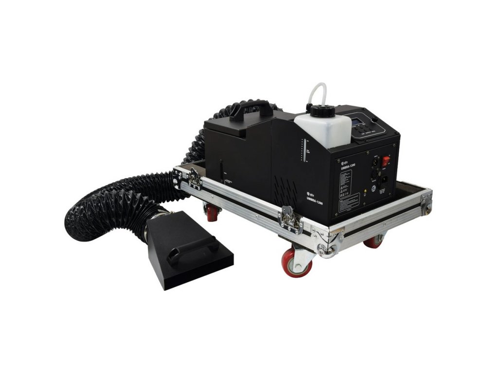 Profesionální 1200W stroj na jemnou umělou mlhu. Díky moderní technologii není potřeba chladit mlhu ledem nebo používat speciální náplně na bázi CO2 apod. Mlhu lze snadno nasměrovat na požadované místo pomocí flexibilní hadice. Odnímatelný ovládací panel s LED displejem, možnost ovládání DMX signálem. Dodáváno v přepravním kufříku na kolečkách. // Původní popis produktu (EN): Stroj s jevištním efektem produkující nízké mlhové efekty typu "suchý led" bez použití oxidu uhličitého nebo ledu. Nová technologie poskytuje mlhu ze standardní mlhové kapaliny a vody. Hlavní jednotka je umístěna v plném letovém pouzdře s kolečky pro přenosnost a má odnímatelnou nádrž na kapalinu a snadno přístupnou nádrž na vodu s vypouštěcím kohoutem. mlha je dodávána přes flexibilní potrubí a výstupní trychtýř, který uživateli umožňuje nasměrovat efekt na konkrétní oblast jeviště. Ovládá se integrovaným digitálním ovládacím panelem, přes DMX512 nebo vzdáleně pomocí přiložených kabelových a bezdrátových ovladačů. Navrženo tak, aby poskytovalo dramatickou scénu s nízkou proudící mlhou pro jeviště, divadla a tematické akce. Dodáváno v plném letovém kufru s uzamykatelnými kolečky. Funguje ze standardní mlhové kapaliny a vody. Profesionální přízemní mlžný efekt. Nevyžaduje led ani oxid uhličitý. Odnímatelný digitální ovládací panel pro dálkové ovládání.Napájení: 220-240Vac, 50Hz (IEC)