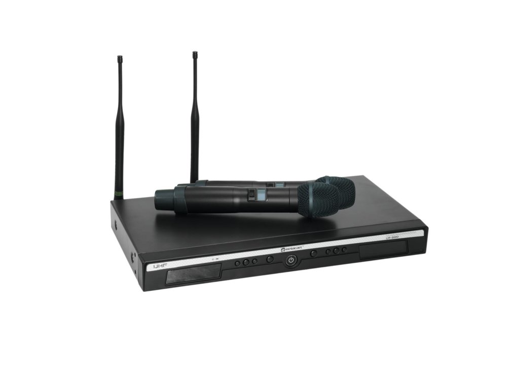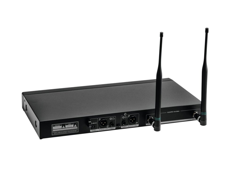 Profesionální 2-kanálový bezdrátový mikrofonní set s dvojicí dynamických ručních mikrofonů v hliníkovém ergonomickém těle. Přehledný OLED displej. Provoz ve dvou přenosových pásmech 823-832 MHz (Duplex Gap) a 863-865 MHz. 10 skupin s 90 fixními frekvencemi po 11 MHz. Možnost paralelního použití až 9 setů bez rušení signálu. Systém PLL ladění, dosah až 80 metrů. Funkce AFS (Automatic frequency scan) pro vyhledávání volných kanálů. Velice jednoduchá synchronizace mezi vysílačem mikrofonů a přijímačem pomocí IR signálu. Mikrofony jsou vybaveny LCD displejem pro indikaci stavu baterie, zobrazení přijímací antény A/B, úrovně signálů RF a AF a přenosové frekvence. Výstupní konektory XLR a Jack 6,3 mm. Dvě odnímatelné antény, kompatibilní s anténním distributorem R-14D. Součástí dodávky je praktická transportní taška. Možnost instalace do racku pomocí přiložených montážních konzolí. Kompatibilní s kapesním vysílačem a hlavovým mikrofonem UT-222 (není součástí dodávky).Systém: 2 kanálový (True diversity)