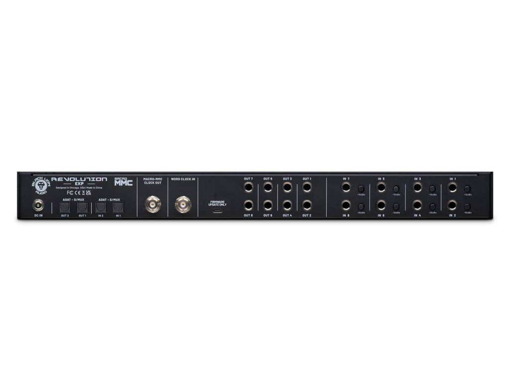 Revolution EXP nabízí rozšíření vašeho audio setu přidáním dalších 8 vstupů a 8 výstupů do rozhraní kompatibilního s ADAT. Získáte tak dalších 16 analogových přípojných bodů na konektorech TRS 6,3 mm (8 vstupů, 8 výstupů) a 16 kanálů ADAT I/O s možností S/Mux. Díky funkci S/Mux můžete po dvou optických ADAT kabelech přenést 8 zvukových kanálů i při samplovacím kmitočtu 96 kHz.