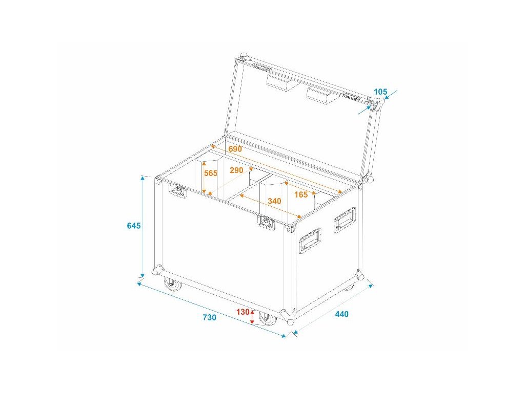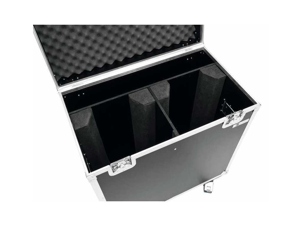 Fitted for 2 devices and accessory Additional accessory compartment Interior upholstered with foam High-quality workmanship with 7 mm birch multiplex, dark brown laminated Aluminum profile frames (25 mm) with rounded edges Three-leg, big steel ball corners Lid with 2x tip-over locks 4 x castors (100 mm), 2 of which with locking brakes 2 x chrome butterfly locks 2 x chrome case handles 4 x stacking dishes for stacking the cases Made in EuropeMax Load: 50 kg