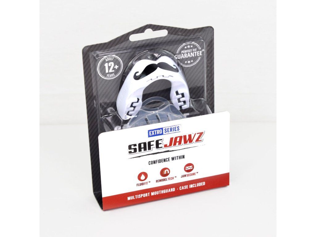 SAFEJAWZ chrániče zubů MO SAFEJAWZ Extro Series jsou chrániče zubů, které vybočují jak kvalitou, tak především nápaditostí v designu a vy vyniknete zajímavým grafickým prvkem na chráničích. ... SAFEJAWZ značka má dlouholeté zkušenosti ve výrobě chráničů na míru pro dentální potřeby a všechny tyto zkušenosti firma přenesla právě do výroby těchto perfektně padnoucích chráničů pro sportovce... Chrániče SAFEJAWZ se díky technologii "Remodel Tech" dají opakovaně tvarovat. Technologie "Fluid Fit" garantuje, že chránič přesně kopíruje kontury vašeho chrupu. Zajišťuje tak skvělou absorpci a ochranu vašich zubů. Jaw Secure™ nabízí ochranu čelisti a spodních zubů. Uzavřená základna a vyvýšené podložky na spodní straně chrániče, zabraňují zranění při nárazu na spodní čelist. Charakteristika: Chrániče jsou velmi tenké přesto však výborně chrání váš chrup Chrániče se nechají opakovaně tvarovat Součástí balení je i velmi pevná krabička na bezpečné a hygienické uchování chráničůDoplňkové parametry