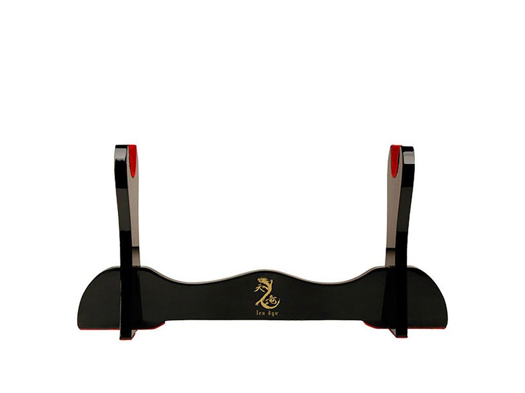 Satori stojánek na meč Stojánek z masivního dřeva na meč nebo dřevěné zbraně na stůl. Tento stojánek je lakován černým lesklým lakem.Doplňkové parametry