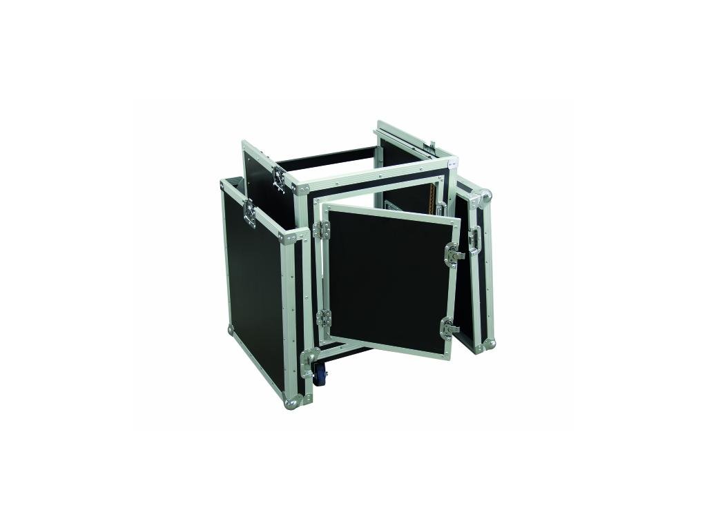 10 HE výšková racková skříň pro 19“ zařízení. Otvírací dvířka ze zadní strany, s 2 brzdami. Rozměr: 560 x 610 x 800 mm.Nosnost: 50 kg