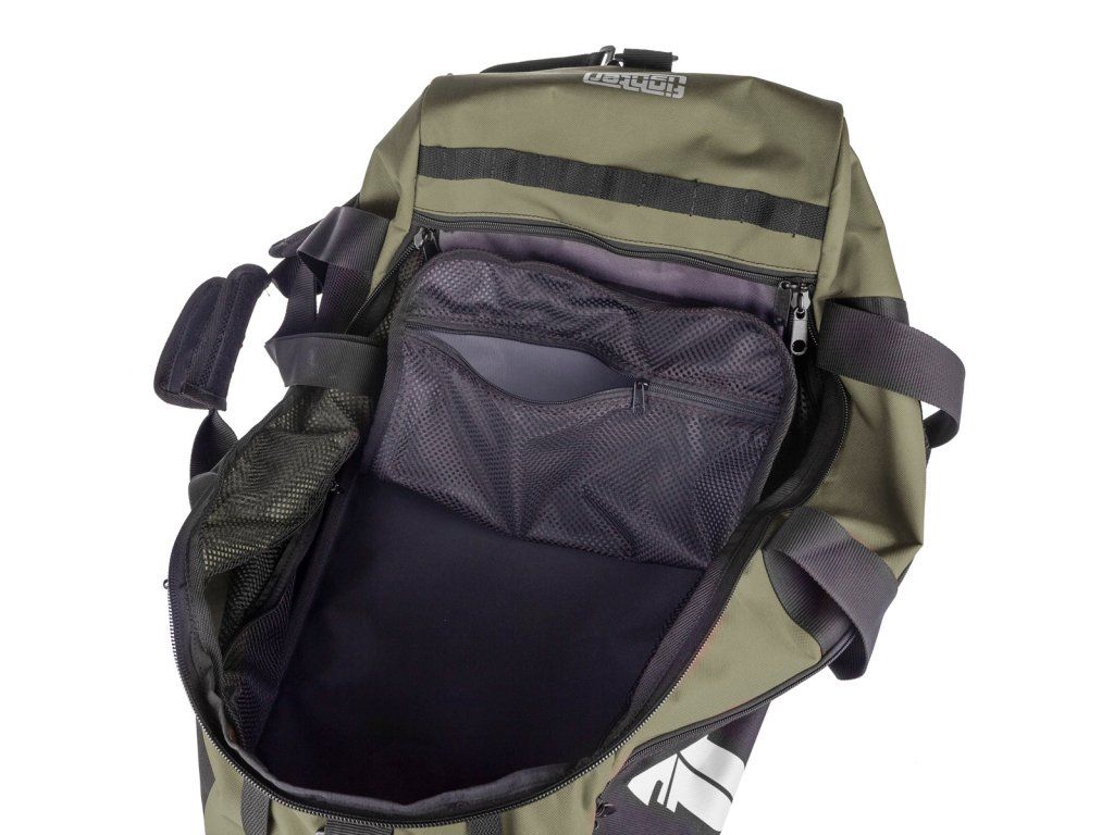 SPORTOVNÍ TAŠKA FIGHTER LINE XL - Army zelená Sportovní taška Fighter je navržena pro trénink bojových sportů s ohledem na objem potřebných chráničů a jiné výbavy. Velikost je ideální pro kompletní výbavu na různé bojové sporty. Pohodlně se sem vejdou např. chrániče holení, rukavice, přilba, chrániče kolen, ručník atd. Díky jejímu rozložení na hlavní velký prostor a 6 vnějších kapes nepřijdou vaše klíče od auta ani doklady do styku s propocenými chrániči. Taška má uvnitř další 3 kapsy na zip. Tašku můžete nosit přes rameno nebo jako batoh. Popruhy jsou schované v kapse na dně tašky. Taška má nastavitelný popruh, který obsahuje měkkou vycpávku pro větší pohodlí. Nepromokavý materiál Snadno možné předělat na batoh Kapsy pro láhve na bočních stranách Polstrované dno Vyrobeno v ČR Rozměry 70 x 33 x 33 cm Objem: 84 l Nabízíme zakázkovou výrobu produktů Fighter, abyste mohli vyniknout. Vaše škola, nebo klub má nyní možnost objednat si vybrané produkty v barvách klubu, nebo s Vaším logem.Doplňkové parametry