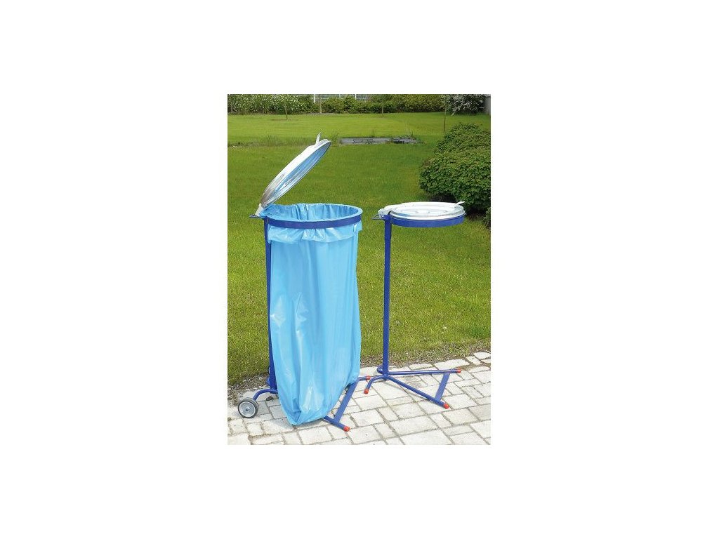 Mobilní stojan s kolečky a víkem pro pytle o objemu 240 l. Vyrobeno z ocelového plechu jakostní třídy 11. Koš je konstruován jako mobilní rám s trojúhelníkovou podstavou a dvěma kolečky. Nosná část je tvořena svislou stojinou, která je spojena s horní profilovou obručí a spodní opěrkou pytle. Na horní obruči je pomocí držáku připevněno odklápěcí odolné žárově zinkované víko. Povrchová úprava konstrukce je provedena lakováním práškovou barvou. Koš disponuje snadným uchycením koše. Koš je určen pro 240 l pytel – není součástí dodávky.Doplňkové parametry