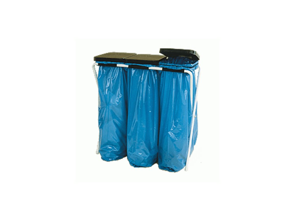 Konstrukce je vyrobena z kovu a víka jsou vyrobena z plastového materiálu. Jednoduchá konstrukce ze dvou trubek o průměru 18 mm s otočným spojem. Určeno pro tři pytle o objemu 70 litrů. Upevnění pytle se provádí gumovým proužkem. Povrchová úprava je provedena nátěrem komaxitem. Vhodné pro vnitřní použití.Doplňkové parametry