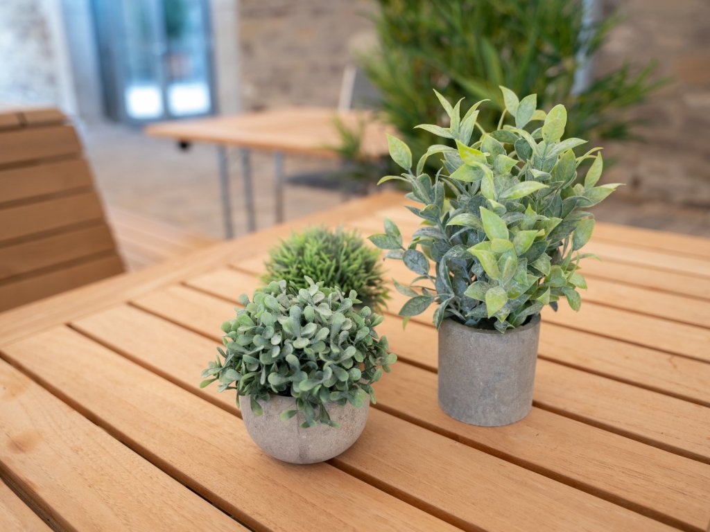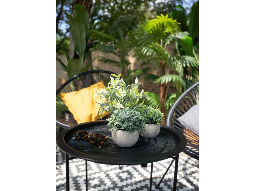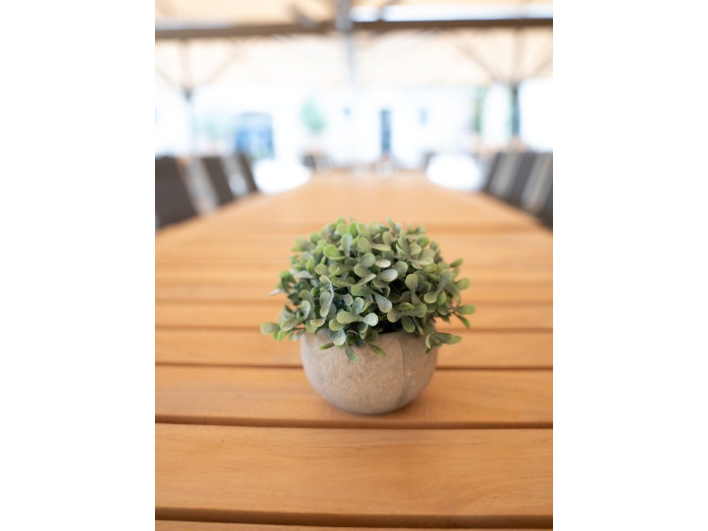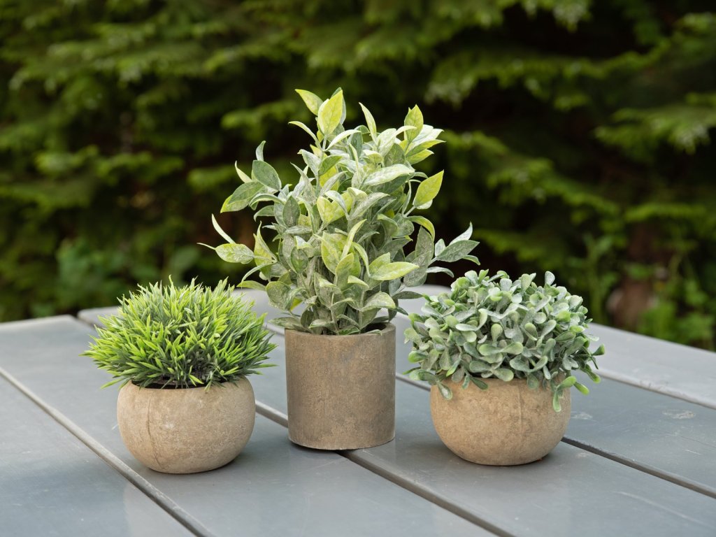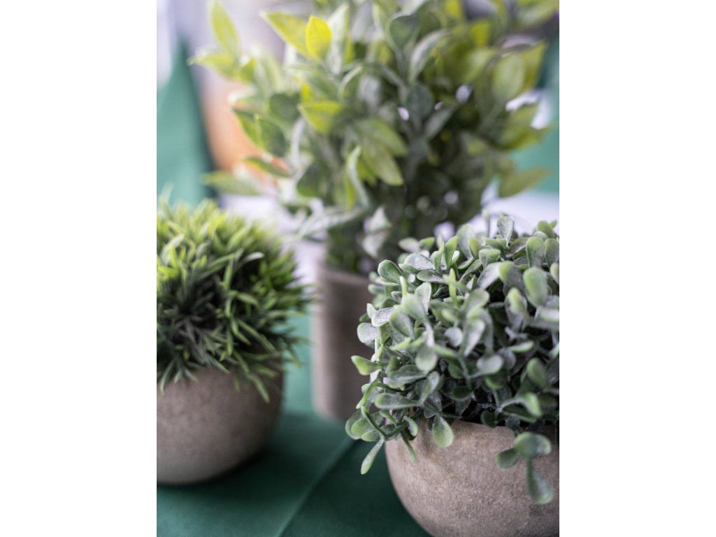 Se svým jasným designem je sada stolních rostlin od Europalms dokonalým doplňkem jakéhokoli stylu dekorace a zařízení. S ním lze rychle a snadno nastavit zelené akcenty: ideální na police, parapet, stůl nebo jako dekorace na pult. Tři malé hrnkové rostliny se liší svým barevným odstínem a strukturou. Zatímco stonky a listy jsou vyrobeny z vysoce kvalitního PE, květináče s betonovým vzhledem byly vyrobeny z recyklované celulózy, a proto jsou obzvláště udržitelné. Jsou proto ideální pro trvalé rostlinné dekorace, i když je málo místa nebo není čas na náročnou péči. (Upozornění: kvůli zpracování celulózy by měly být květináče chráněny před vodou a také by neměly být ponechány na dešti. ve venkovních prostorách). Dekorativní stolní sada. Výrobek je dodáván připravený k postaveníPostavení/fixace: Volně stojící zakryté umělou zeminou